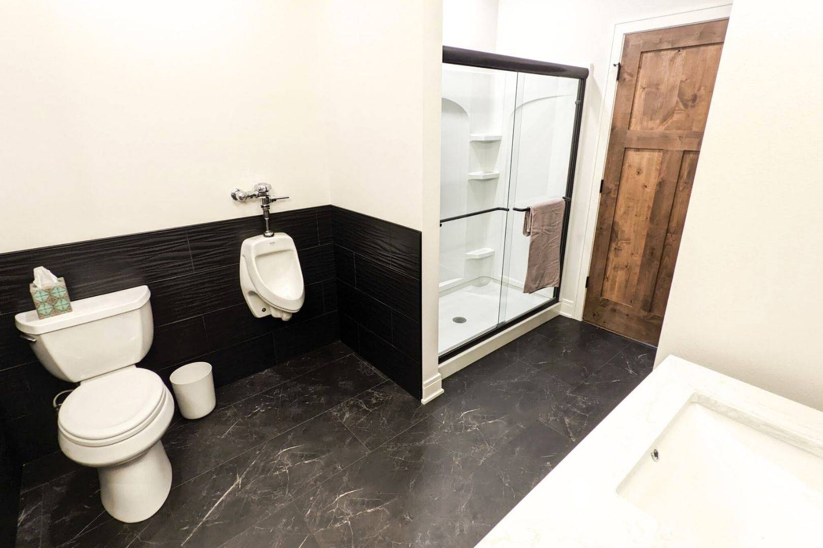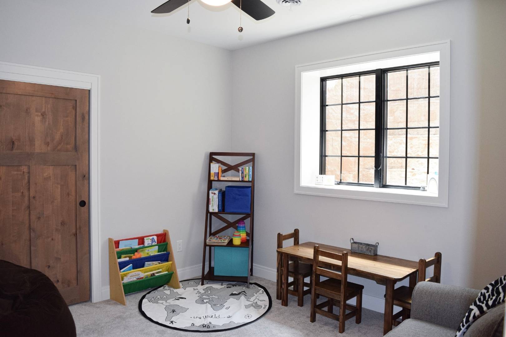 For movie nights, we added a dedicated theater with tiered seating that delivers a true cinematic experience. The basement layout also includes a bedroom, a children’s playroom that easily doubles as an additional bedroom, a full bathroom, and a fully equipped home gym. This basement is truly one of a kind.